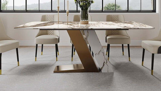 Item: DT8168WBR130 Color: White Top Material: Tabletop: 12mm Glossy Sintered StoneTable Base: Carbon Steel Size: Overall Product Dimension:51.18"W x...