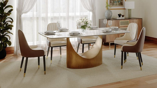 Item: D1350 Cyra Dining Collection (Marble Top) 7 Pc Dining Set (1 Table and 6 Chairs)...