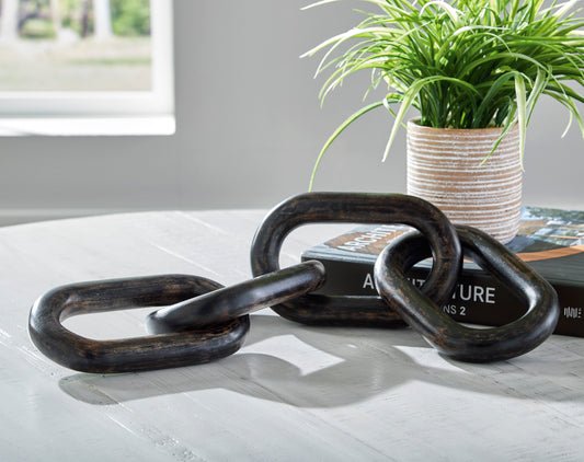 This sculpture sets the standard for casually cool art. Interlocking wood rings in a natural...