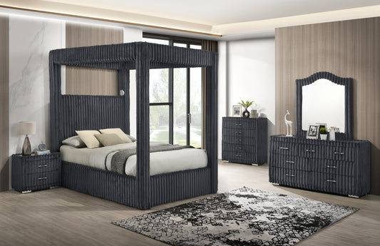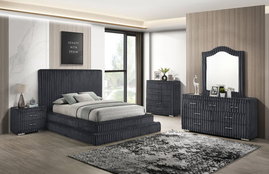 Elevate your bedroom with the B9020 Micah w/Henley set in sleek grey premium corduroy. Crafted...