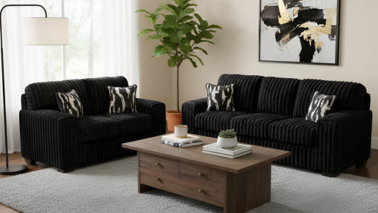 Transform your living room into a sophisticated retreat with this stunning black corduroy sofa and...