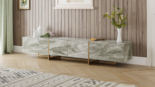 Elevate your living room with the 79" Stoney Grey TV Stand, featuring a sophisticated marble-look...