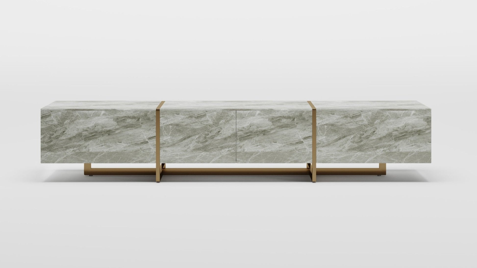 Elevate your living room with the 79" Stoney Grey TV Stand, featuring a sophisticated marble-look surface that brings natural elegance to your space. Its slim golden legs add a touch of modern refinement, making it both a functional media center and a stylish focal point. Perfect for those seeking to combine durable design with timeless beauty.