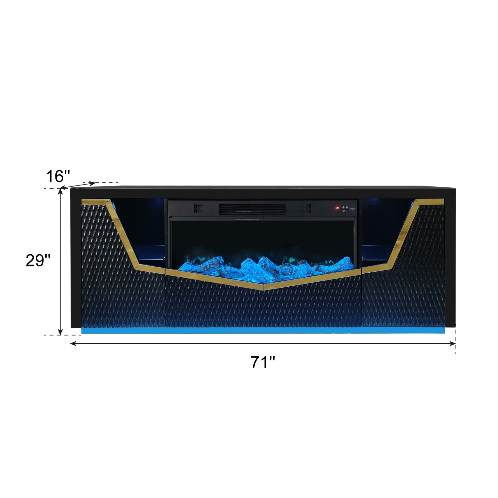 | Fireplace | 71" x 16" x 29" | 75.6" x 20.5" x 33.5" | 205.6 | 30 |