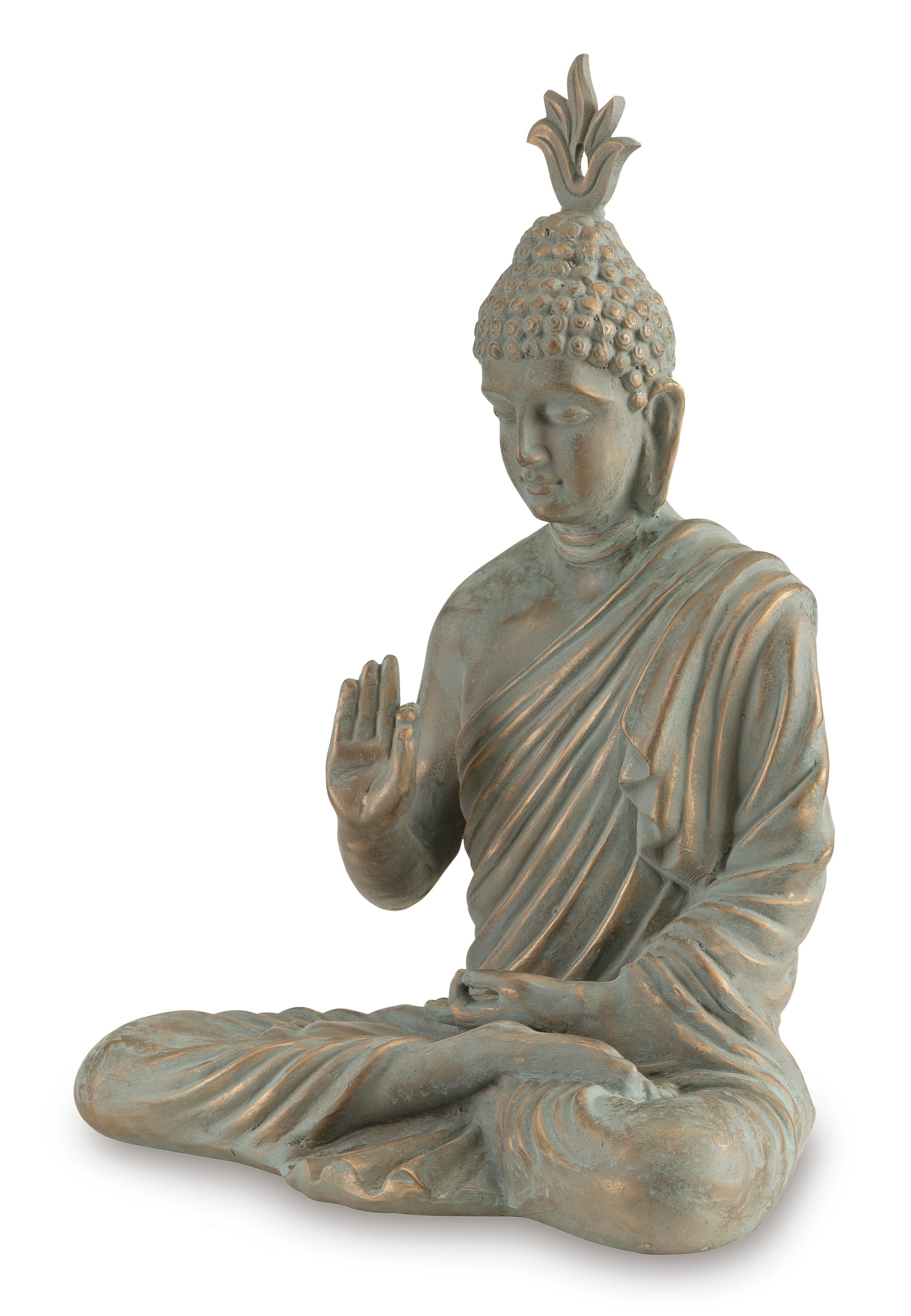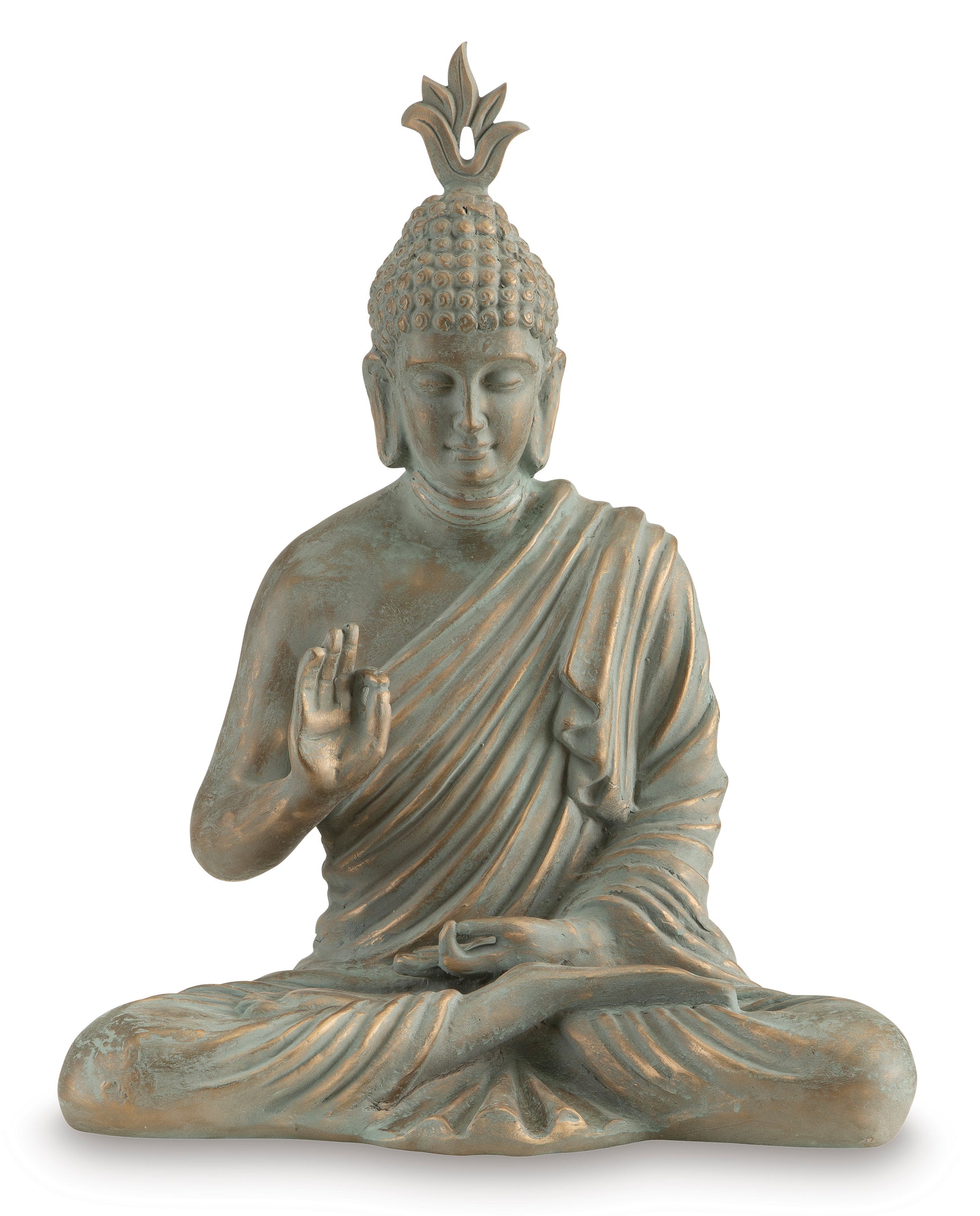 Tune in to Zen and tranquility. This sculpture can be placed in your home or indoor sunroom to create a tranquil space for relaxation and meditation. With its detailed crafting and glorious finish, this piece beautifully captures fluidity and mystique.