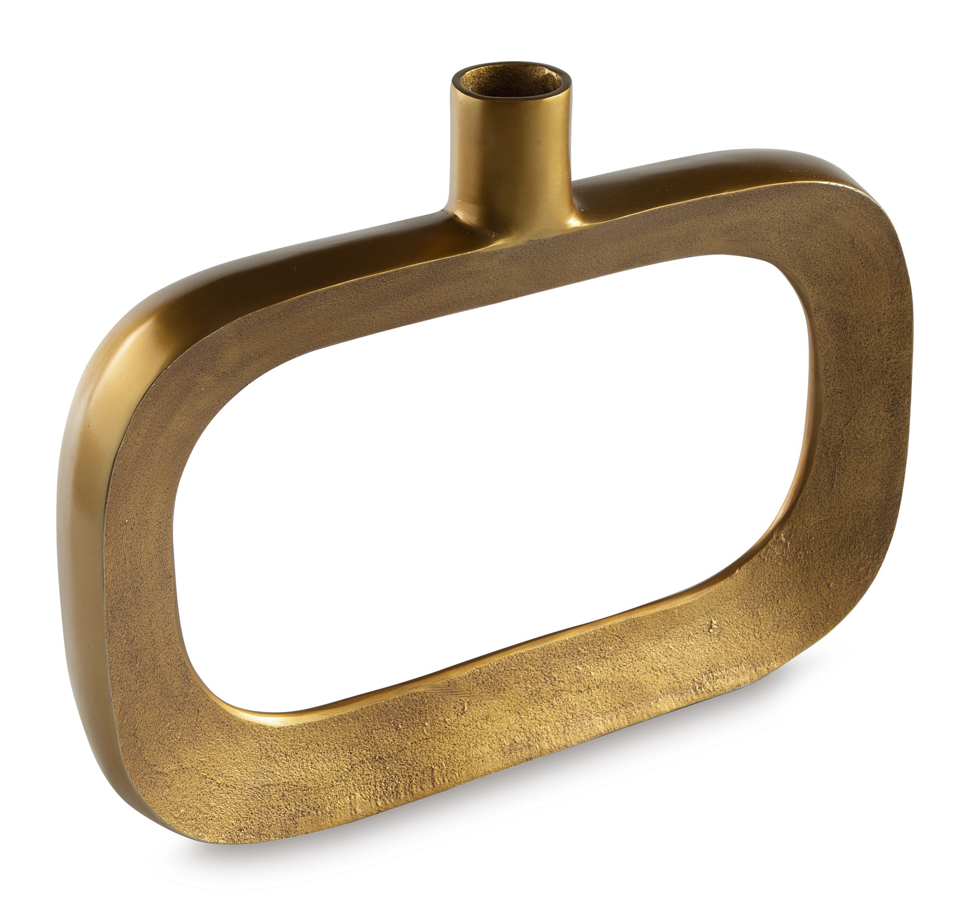 Geometric forms get a glam upgrade in this vase. Decidedly contemporary with its sculptural silhouette, it ushers a confidently curated vibe into your space. The goldtone finish brings an eye-catching metallic flair to your mantel, bookshelf or centerpiece arrangement.