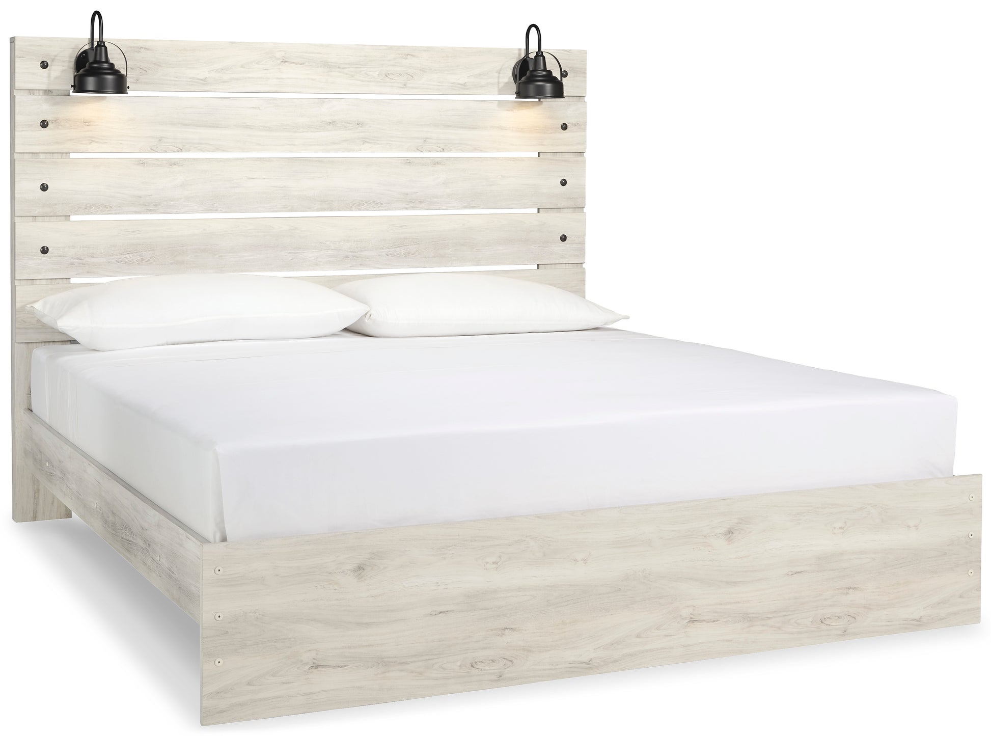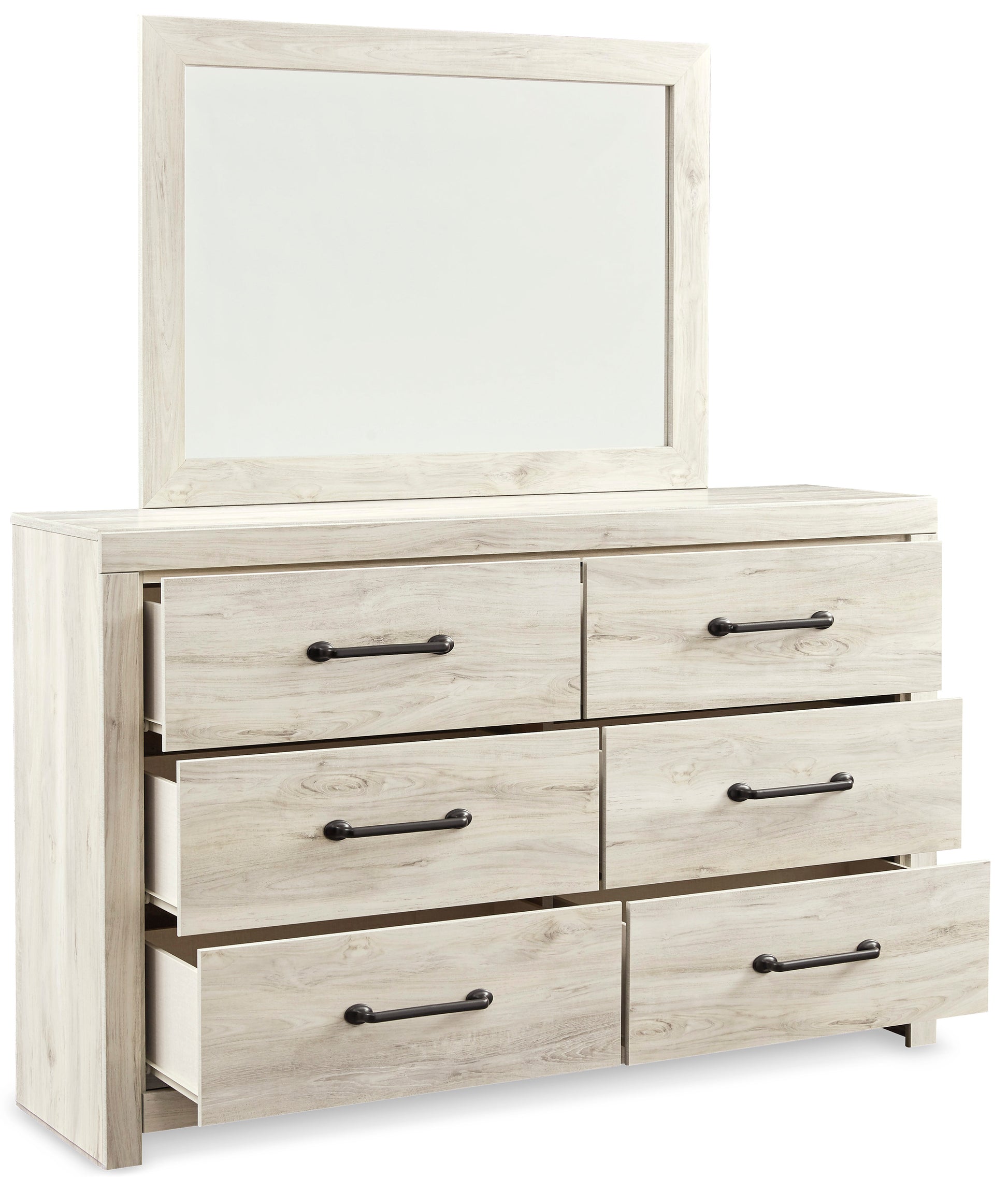 What a delightful take on rustic industrial style. Whether modern loft or modern farmhouse, the Cambeck bedroom package makes itself at home. The wispy whitewash palette enhances without covering the grain for that weathered look you crave. Elongated drawer pulls on the drawers elevate the aesthetic.