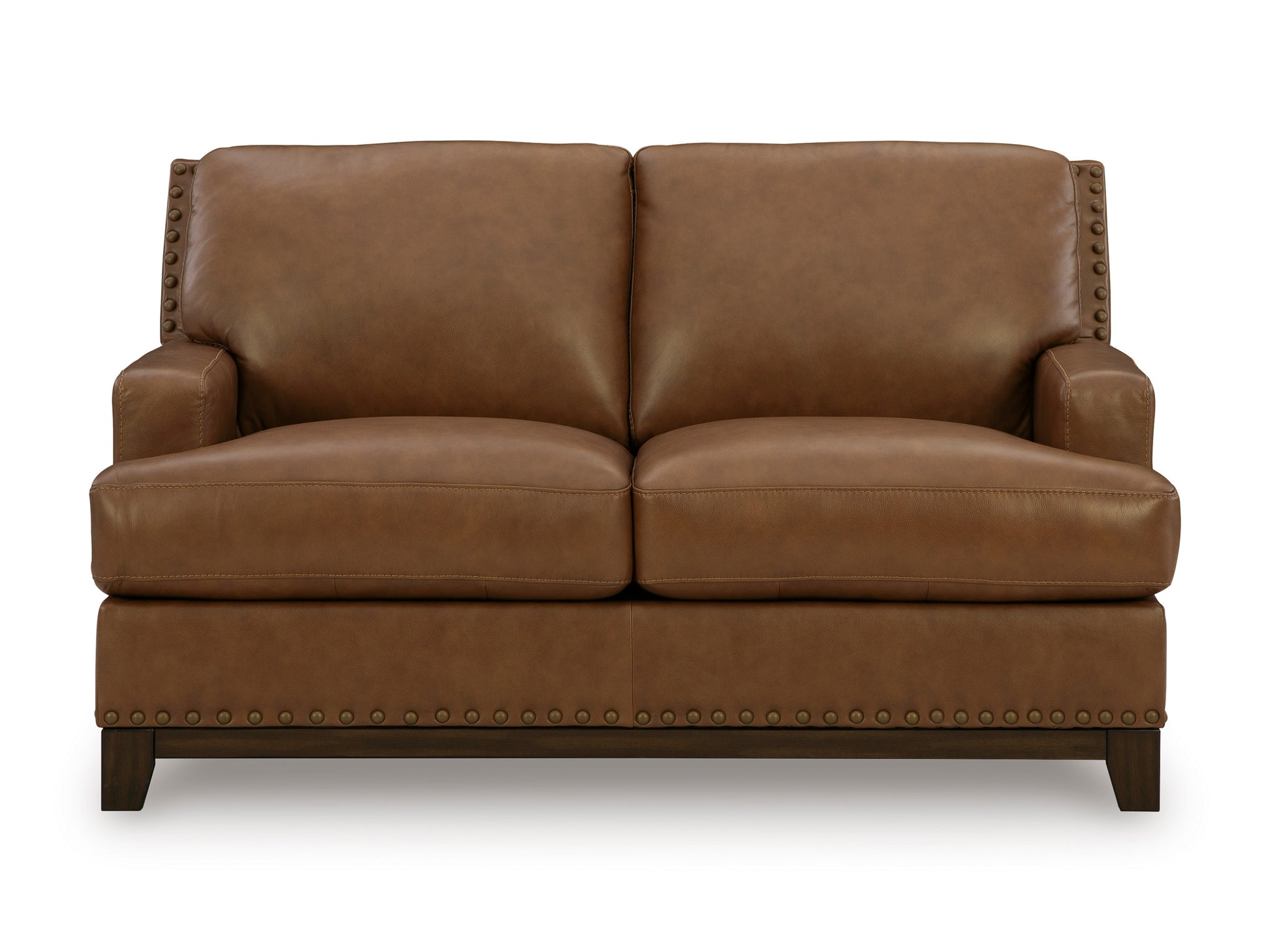 Effortlessly blending contemporary and classic elements for a truly timeless look, this set offers a fresh take on transitional style. A robust silhouette is coupled with skillfully matched leather and faux leather upholstery, while nailhead trim adds a touch of subtle sophistication. Pleasingly plump cushions with jumbo stitching provide exceptional comfort. We’re all in—how about you?