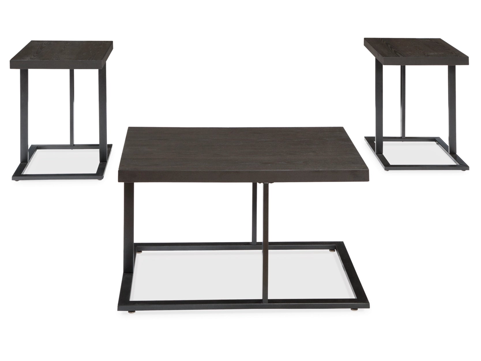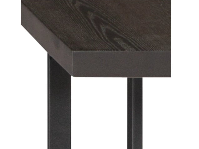 Style gone askew. Airdan coffee table set goes off center in a beautiful way with an eye-catching cantilevered design. Sleek metal base in an aged bronze tone is a seamless merge with wire-brushed veneer tabletop with an earthy element.