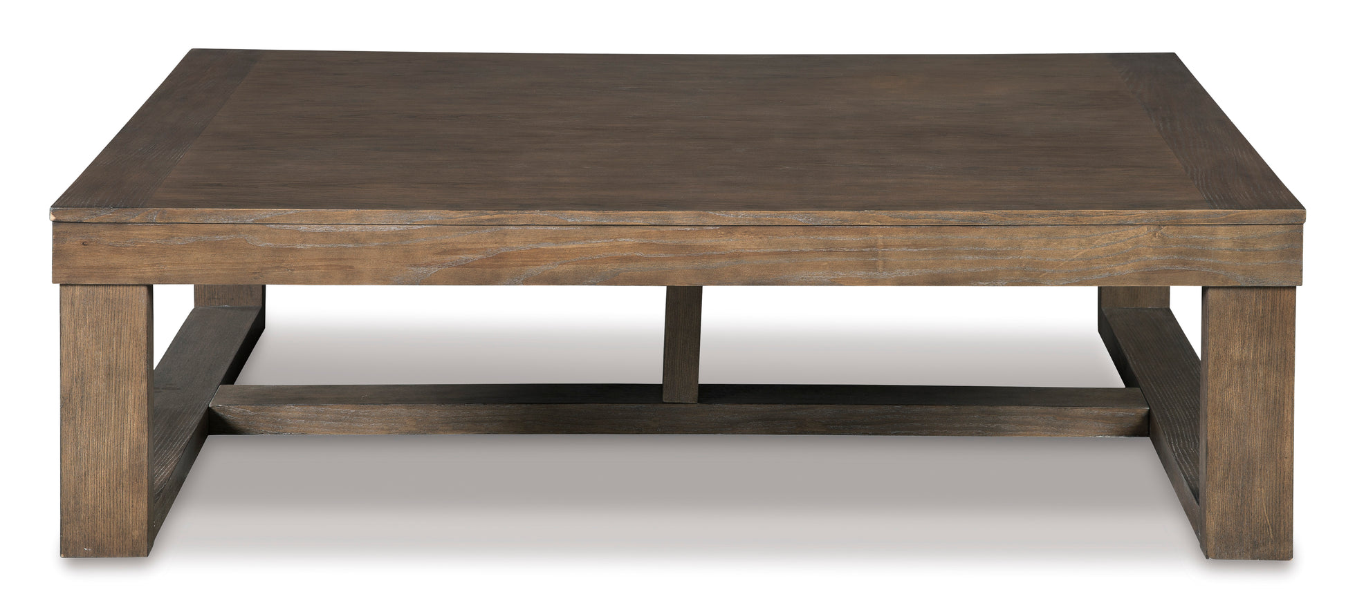 Oversized yet far from overdone, this designer coffee table masters the art of simplicity. Bold, blocky profile is enriched with plank-effect styling and a textured grayish brown finish for a look that’s cool and contemporary and a vibe that’s warm and inviting. Its generous scale makes it a natural complement for spacious sectionals.