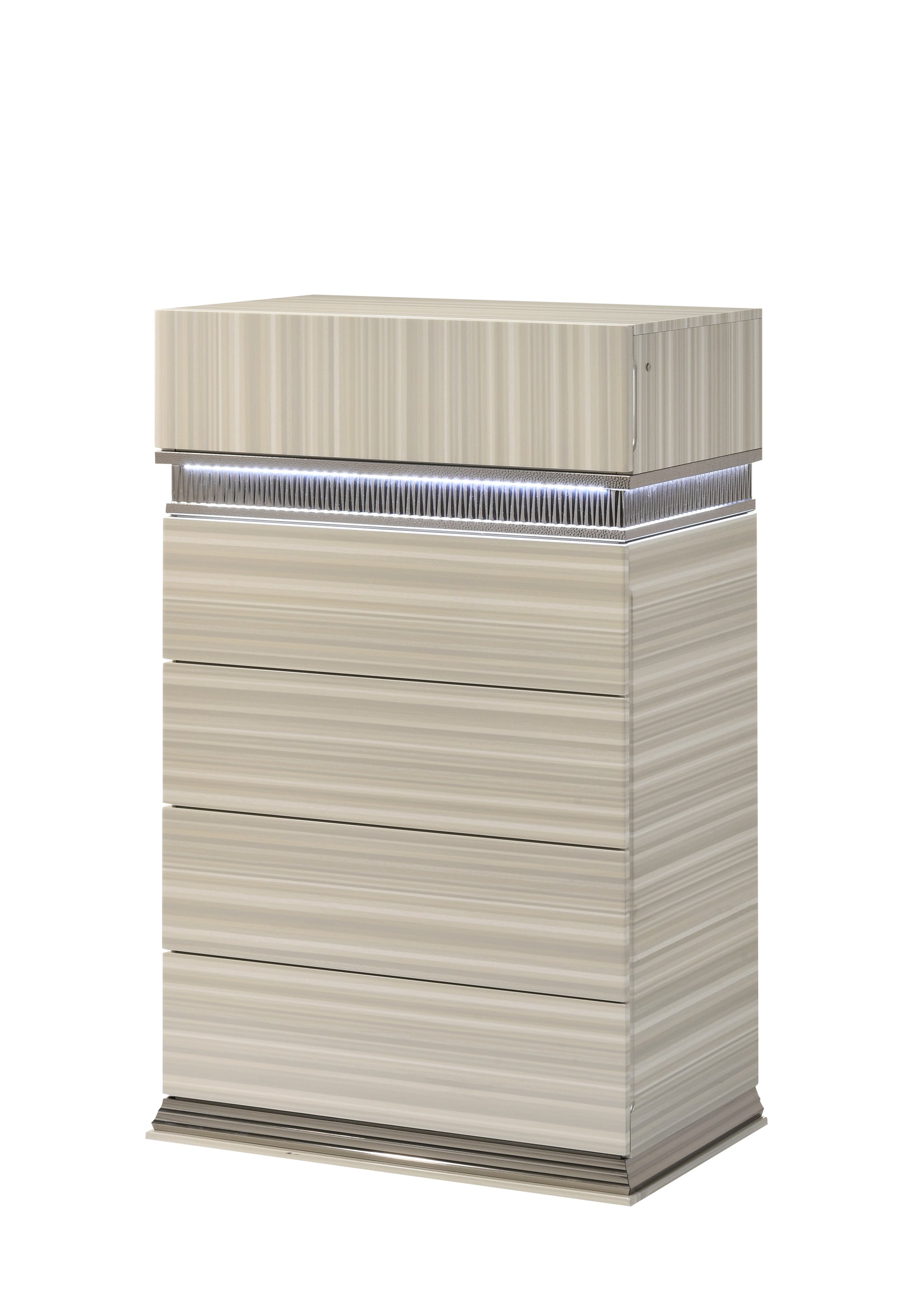 Modern Functionality: Spacious storage drawers throughout the collection feature smooth-gliding hardware and polished silver bases for added durability and style.