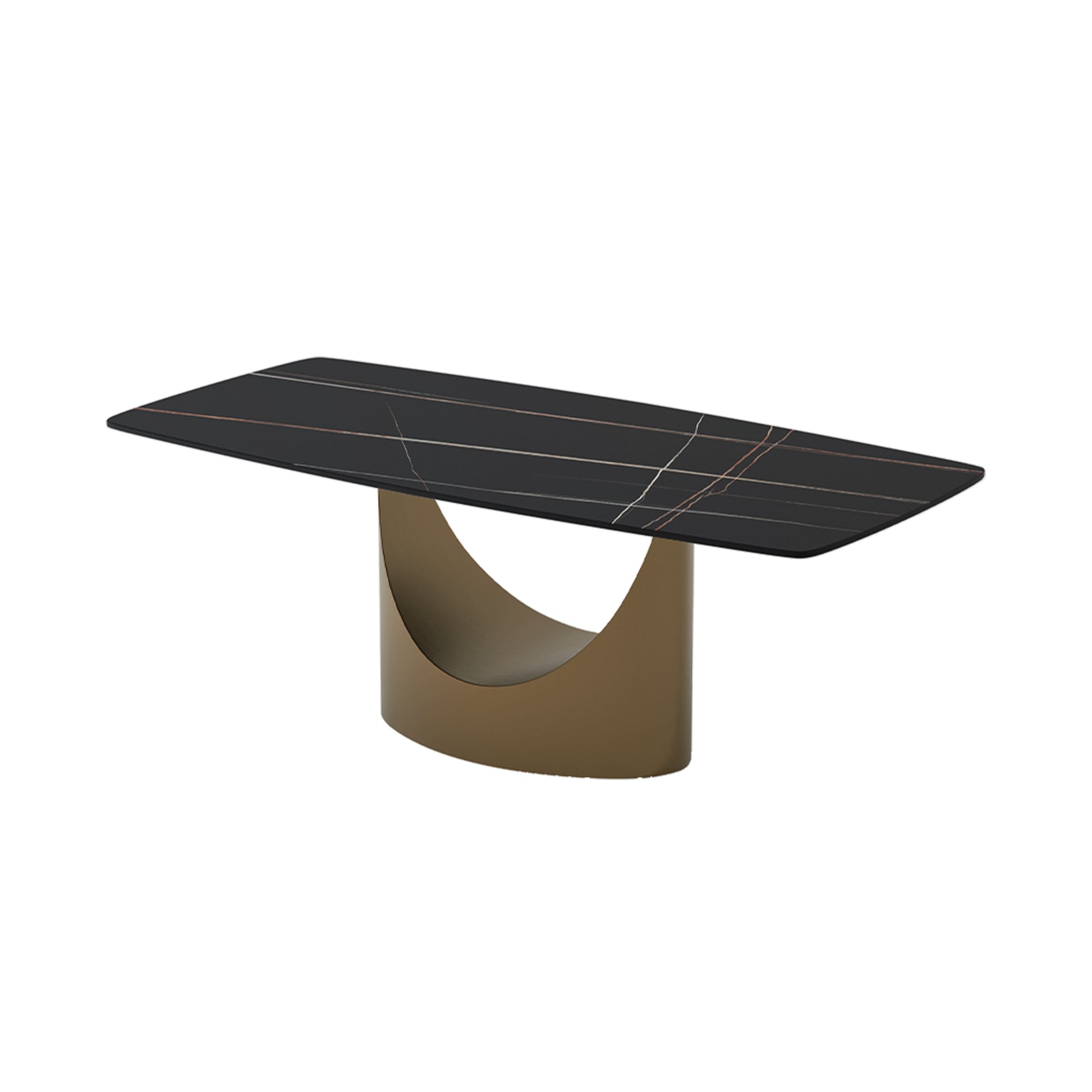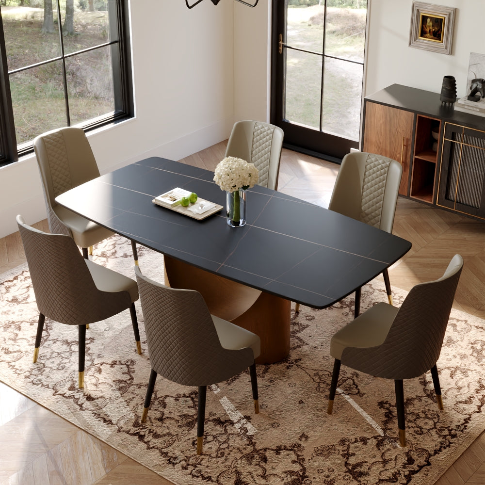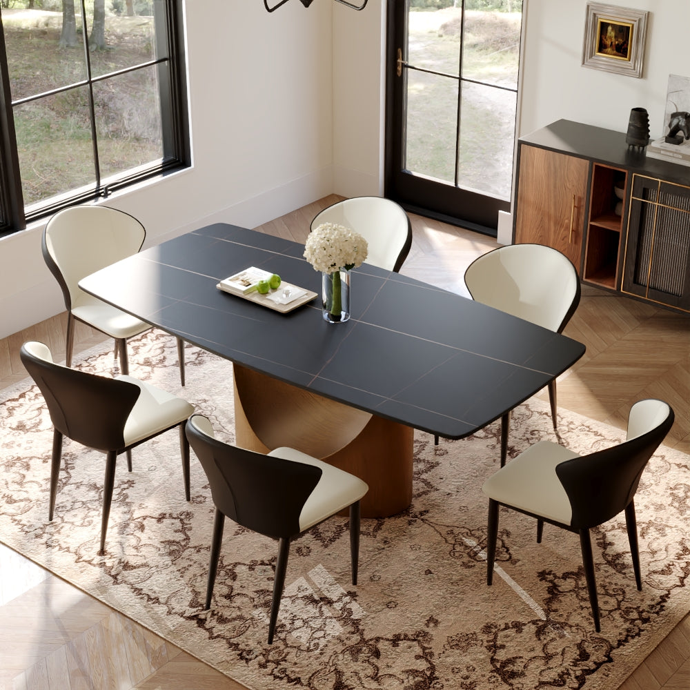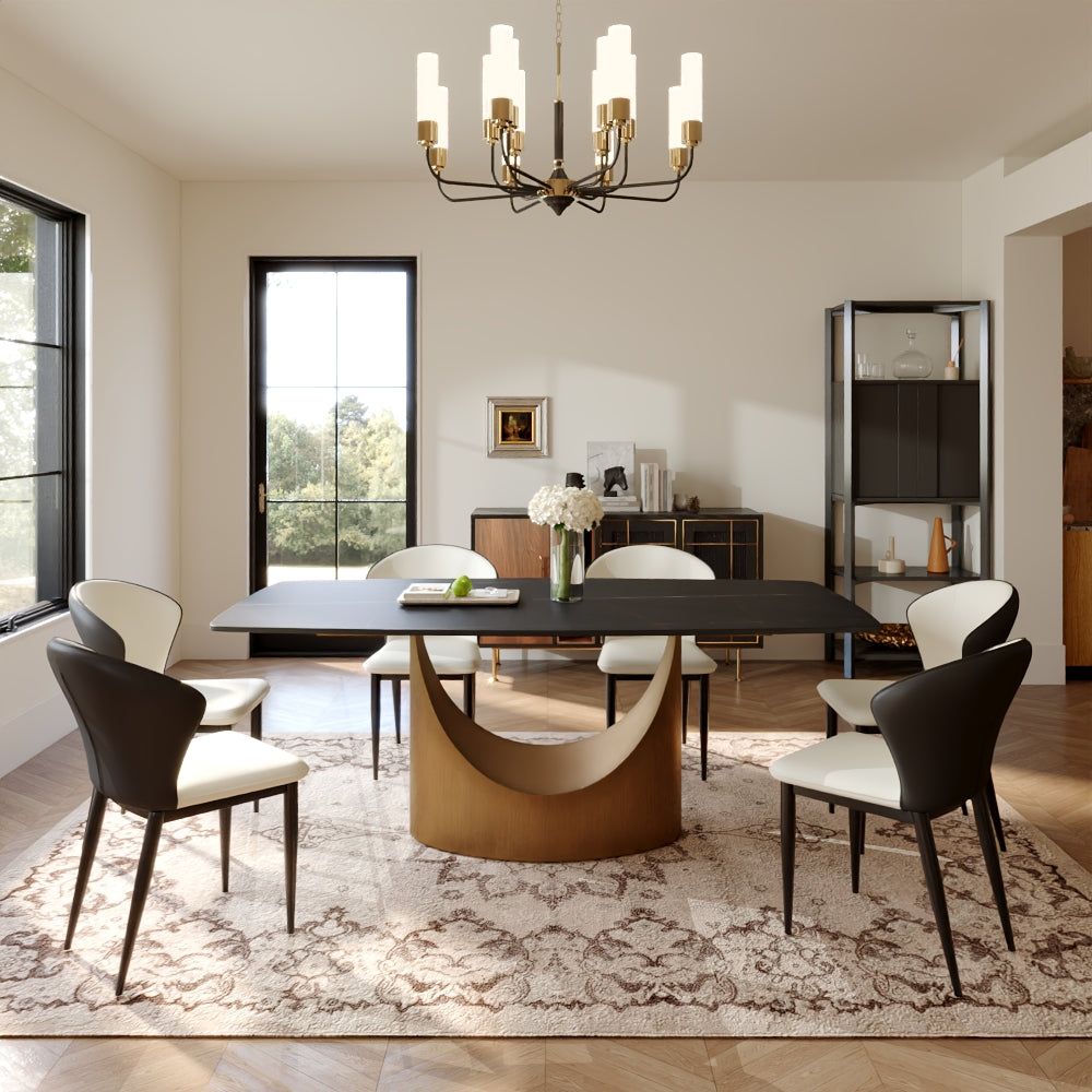 The U dining table is an astounding creation that is well-suited for formal occasions as well as domestic use. As the name implies, the base is designed with U-shaped hollowing out, which has outstanding style. The arc-shaped base is in sharp contrast to the rectangular top, creating an eye-catching geometric sense. Not only is the table aesthetically pleasing but durable and supportive as well. There is enough space at the top for many people to eat and talk comfortably.