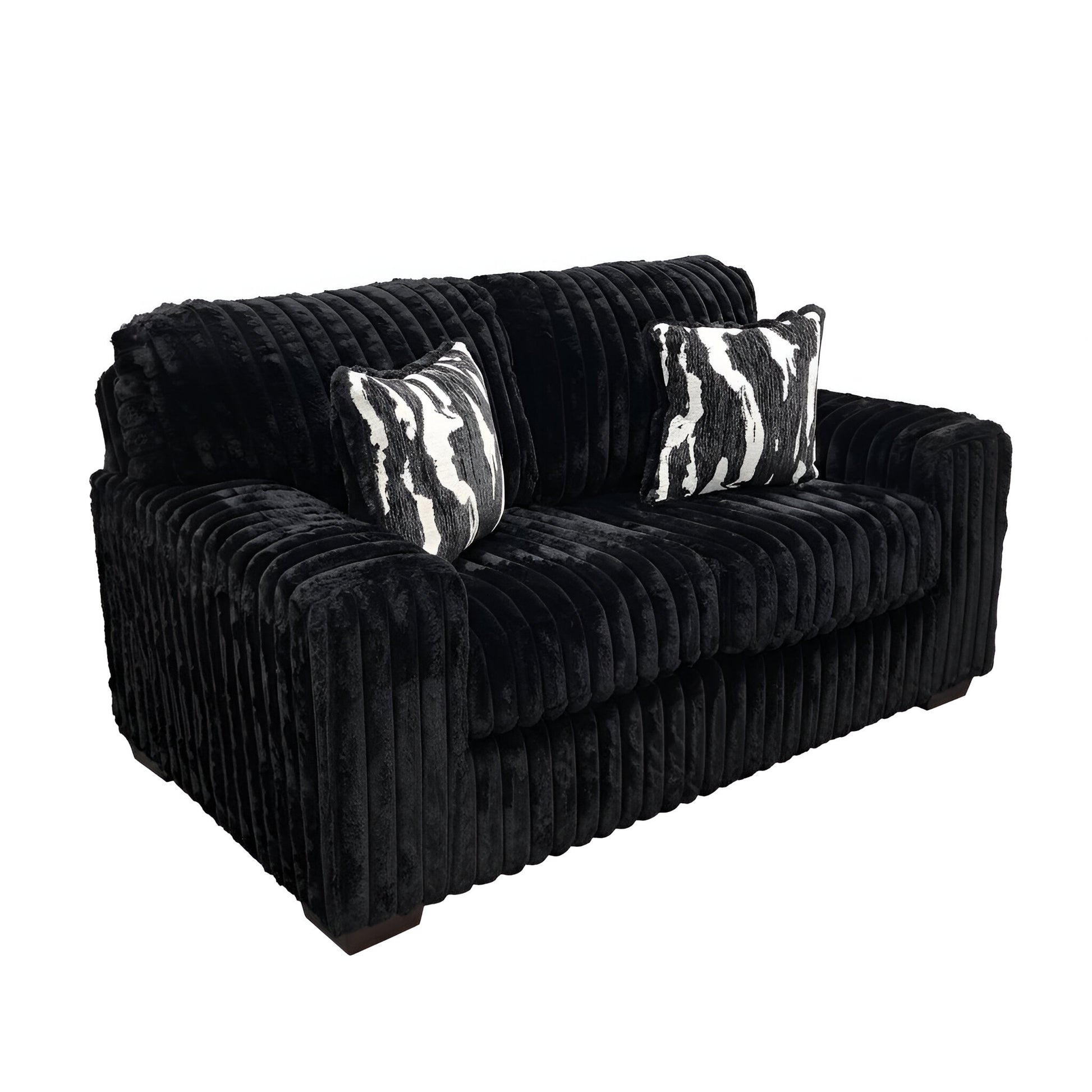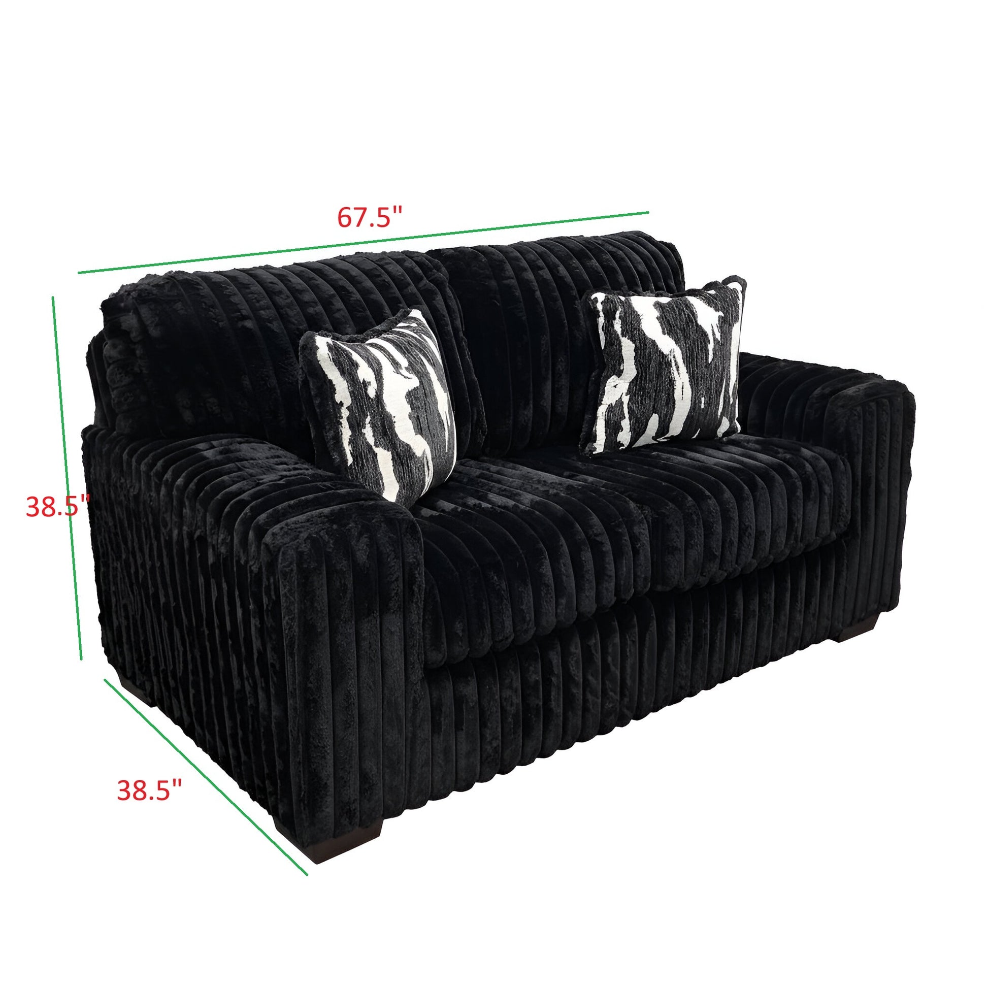 Transform your living room into a sophisticated retreat with this stunning black corduroy sofa and loveseat set. The 91-inch sofa offers generous seating for the entire family, while the coordinating loveseat creates the perfect cozy corner. Luxurious corduroy upholstery delivers both style and comfort, developing a beautiful patina over time. Included accent pillows add visual interest and extra comfort for lounging. This versatile two-piece collection works beautifully in modern, transitional, or eclectic interiors, making it an investment in both comfort and timeless design.