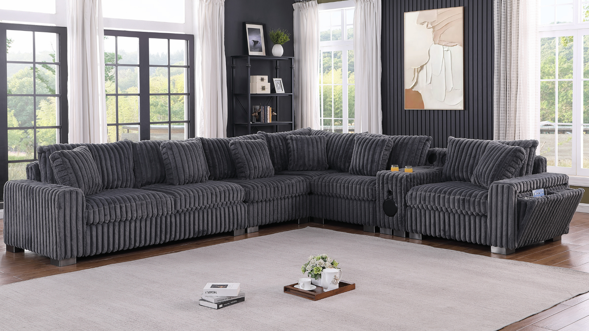 7pcs Sectional LAF, RAF, Wedge, Armless x 2, Ottoman, & Console (BT Speakers) |