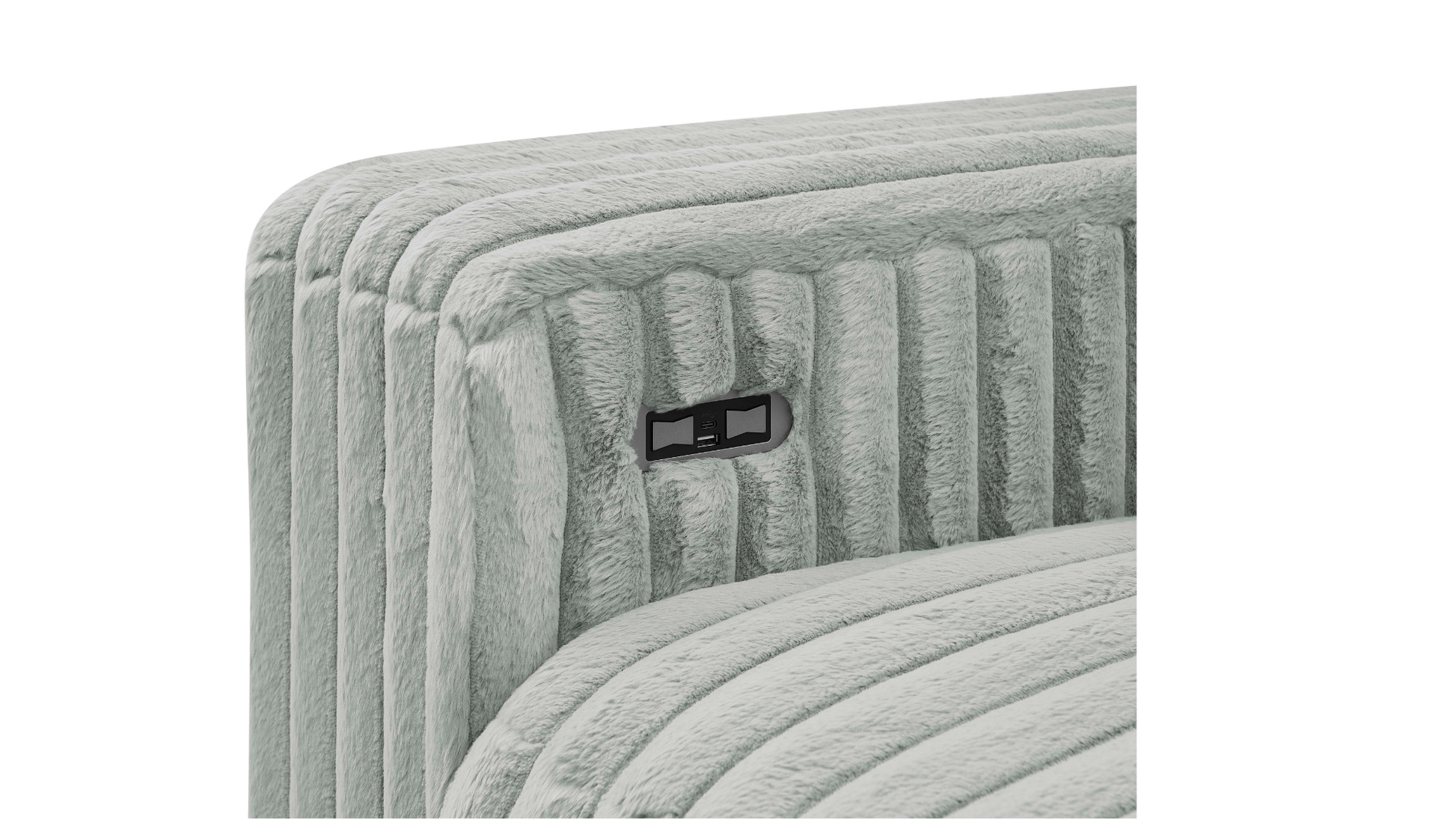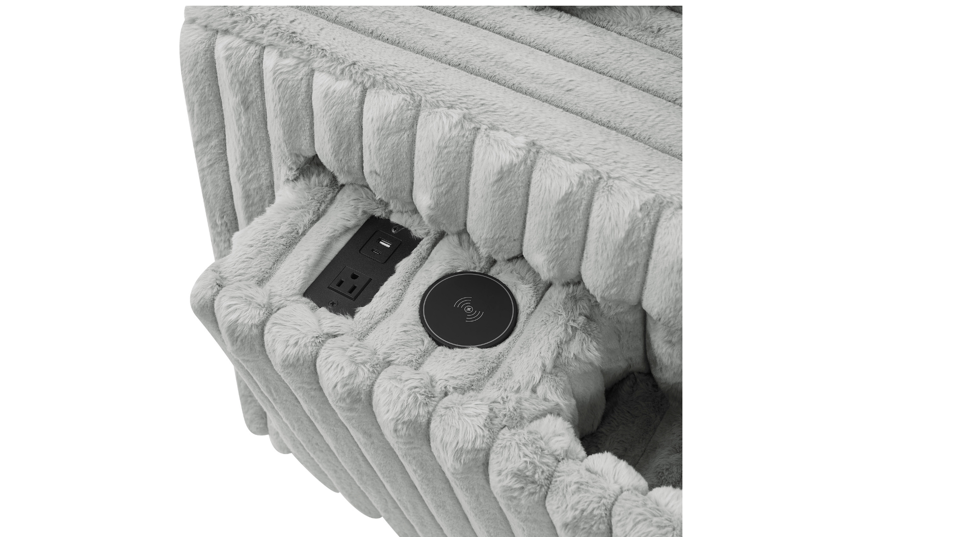 The S3663 Rana sectional brings modern comfort and convenience to your living space. This sleek grey reclining sectional features a power recliner on the left side with hidden storage underneath, while the right side includes a concealed cupholder. Both sides are equipped with wireless charging, USB ports, Type C connections, and power outlets—keeping your devices charged and within reach. Perfect for movie nights, relaxation, or entertaining guests, this sectional combines luxury seating with smart technology integration for the contemporary home.