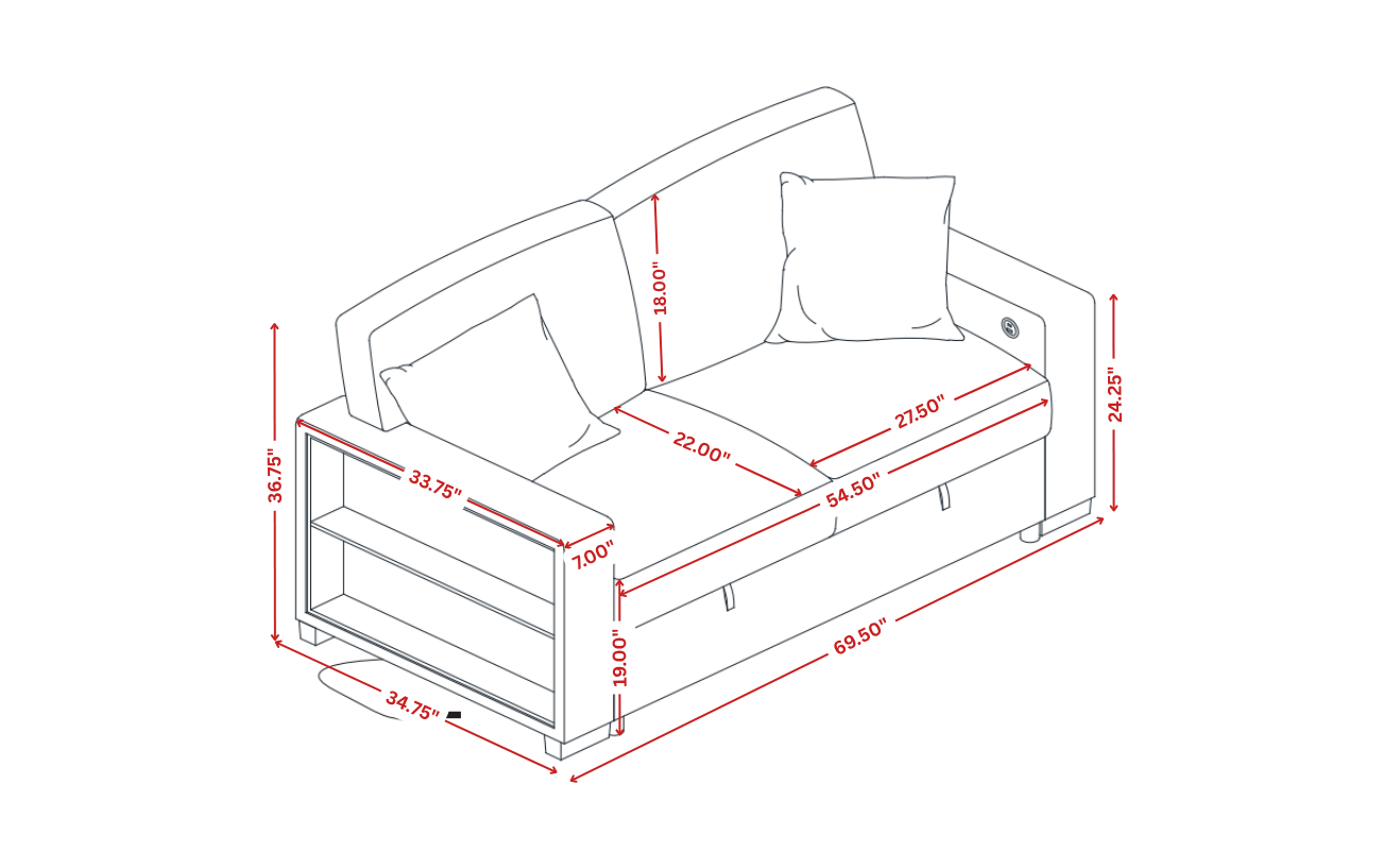 | Loveseat | 69.5" x 34.8" x 36.6" |