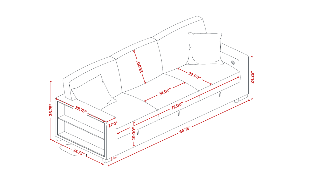 | Sofa | 86.8" x 34.8" x 36.6" |